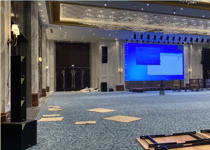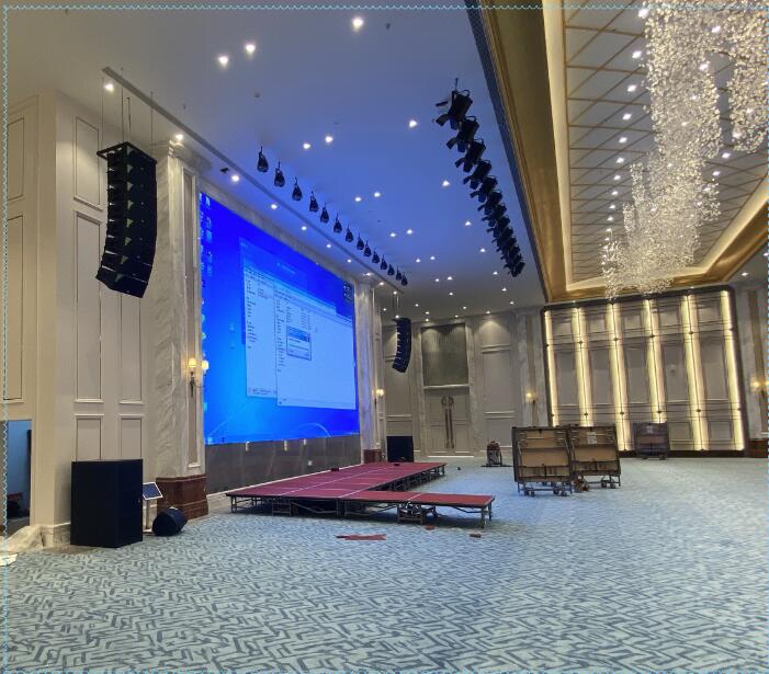 1、 该项目厅面积大,用户要求多功能场景使用,我方工程师多次到达现场查看,并根据用户要求,设计一套无论会议、学术报告、娱乐活动等多功能灵活的优质方案。