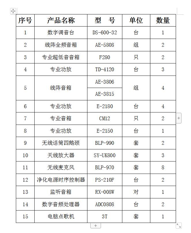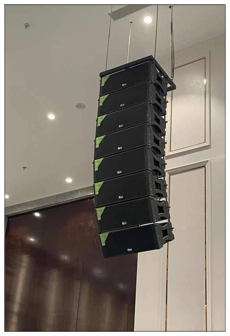 2、 主扩声采用线阵AE-5808双8寸全频音箱16只,线阵AE-3815单15低音音箱4只, 配合其它专业音箱辅助扩声,加上大功率功放机、真分集无线麦克风、32路数字调音台,数字音频处理器等其它专业周边的使用,本套系统运行稳定、管理方便、造型布置美观、声场覆盖均匀、穿透力强、音质清晰自然效果好。