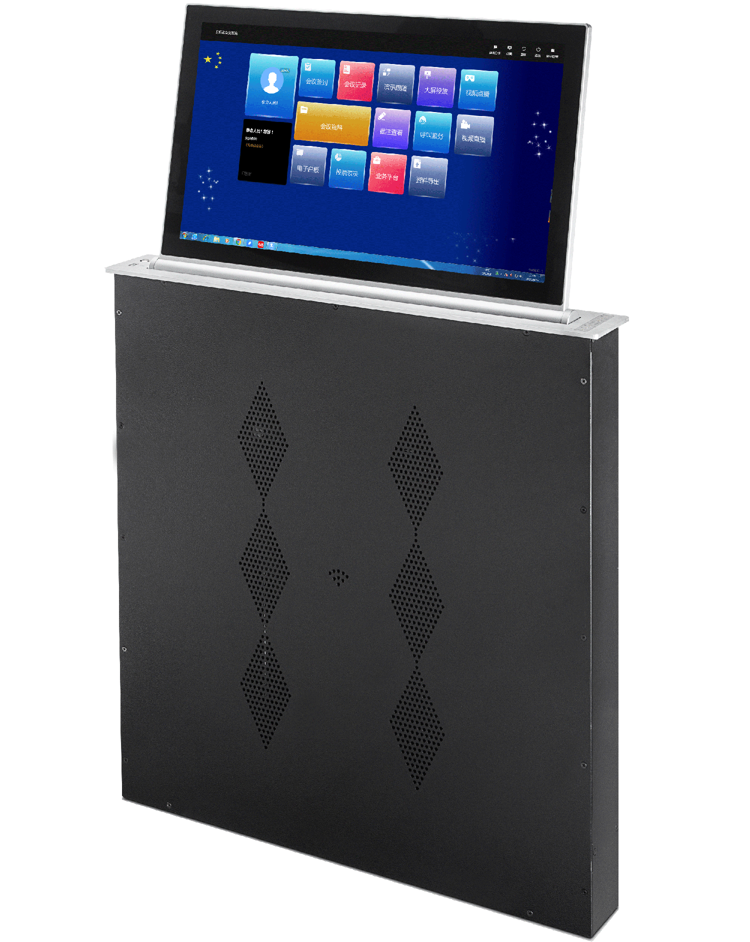 | S173HY | 1、铝合金材质外壳喷砂阳极氧化处理,超薄设计边缘厚度仅为6.8mm,采用17.3英寸10点电容触控高清液晶屏,分辨率1920x1080分辨率,为IPS全视角显示; 2、话筒与升降器完美一体化异步升降设计,主席机全权控制会议秩序的优先功能,315°双段全向弯折不锈钢软管咪杆,升降自带折弯扶直功能;心形电容式咪芯,灵敏度-47dBV/Pa;信噪比>90dB;频率响应30 -20KHz; 3、升降器面板铝合金材质阳极氧化拉丝工艺,超薄设计面板宽度仅为8.8mm; 4、显示屏话筒与升降器无外露连线、无连接背板、无外露螺丝,整体美观大方;具有触摸受力保护装置; 5、升降器内部构造采用双直线轴承双光杆滑动铁齿轮齿条升降传动方式,坦克链式的线材保护措施,强弱电分离,超稳定、低噪音设计; 6、升降器支持手拉手RS232控制、软件控制、手动控制、遥控器控制,可统一控制或任意分组控制; 7、升降器面板具备上升、暂停、下降、前仰、后仰、开关按钮;多媒体USB3.0信息接口带防尘帽;显示器支持自动仰角0~30°最佳观看视角与触控舒适度调整; 8、升降器背面板具有HDMI x1、USB x2、RS232 x2 220V/50hz电源插x1; 9、具有电源保护功能,屏幕下降后几分钟无操作,自动断电保护; |