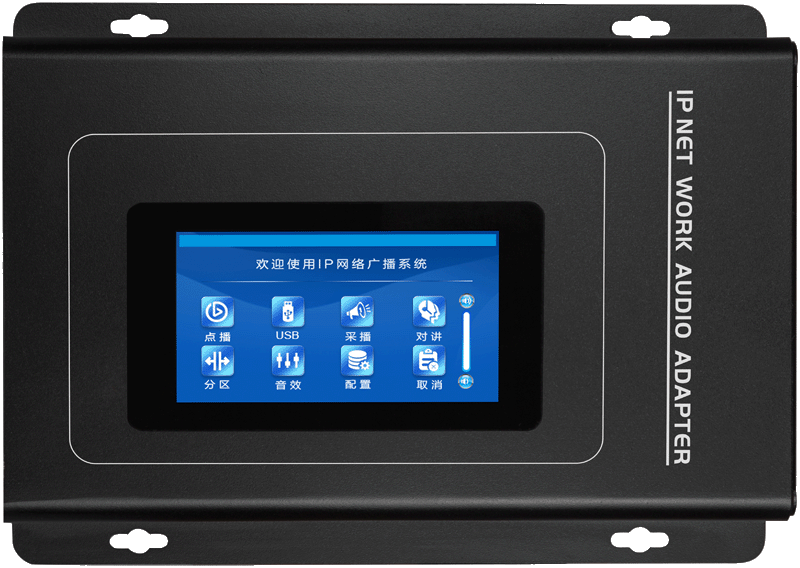 2、内置网络IP解码模块可实时播放网络音乐及网络呼叫广播功能,网络点播功能,可实现双方互相通话;网络延时小于30毫秒;