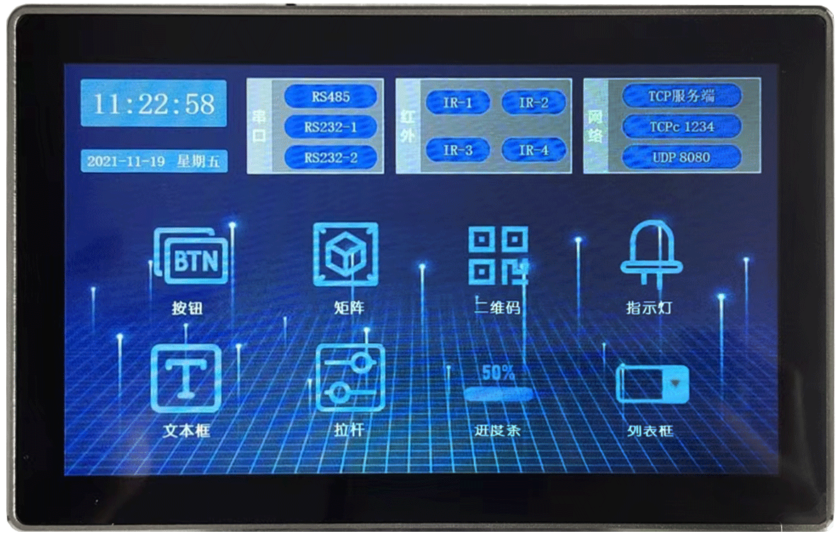 1、65K真彩色LCD 7寸IPS触摸屏,分辨率为1024*600;