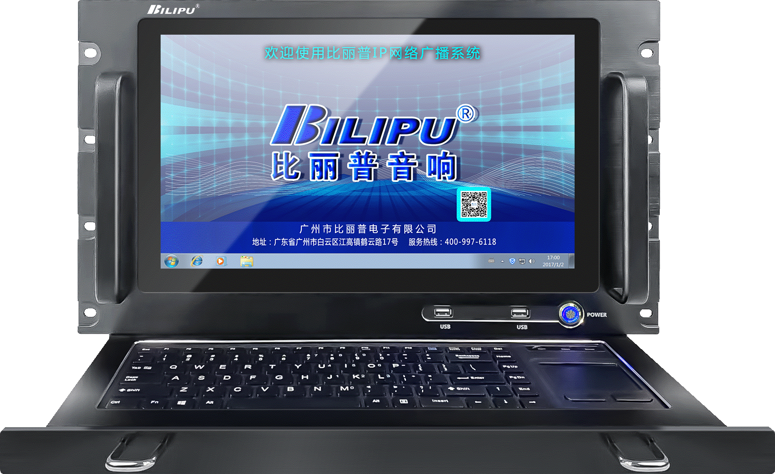2、采用17.3英寸LED液晶显示屏设计,具有简单易用的触摸屏操控,内置抽拉式键盘,操作方便;