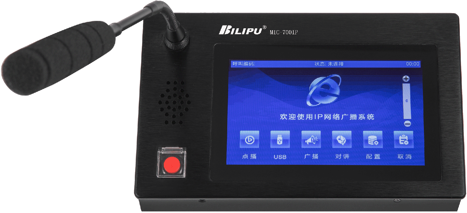 1、采用7英寸电容触屏显示屏设计,支持通过触屏对U盘/SD卡内文件进行本地播放和实现本地扩声,并发送到指定终端播放: